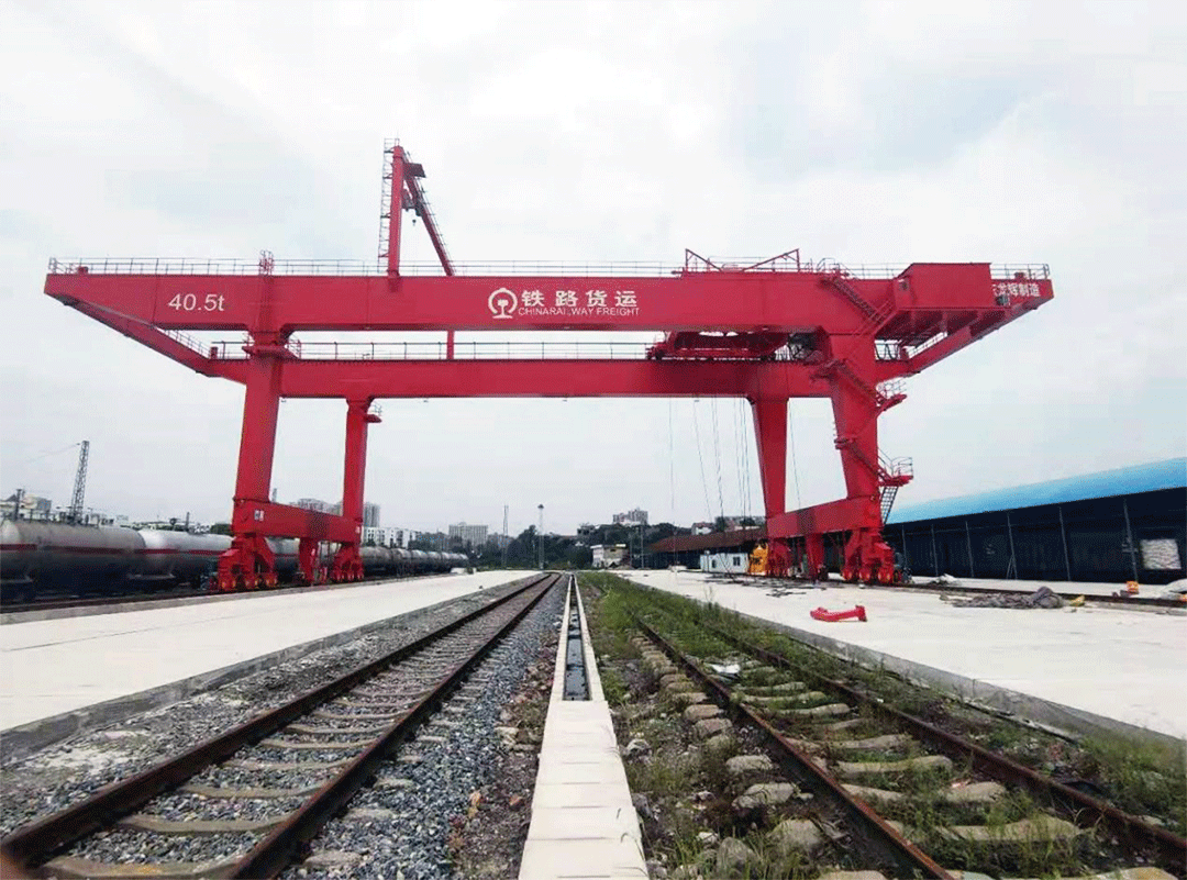 轨道式集装箱龙门吊主要用于集装箱铁路转运场和大型集装箱储运场的集装箱卸载、搬运和堆放‖。